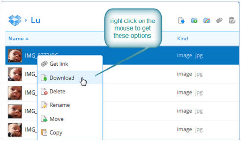 Now, if you want to save any of the files in your computer, you can right click over the chosen file and select “download” from the listed menu options: