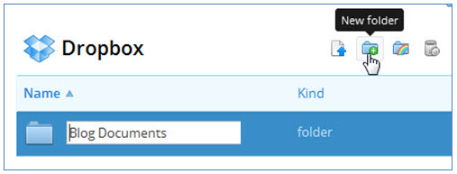 If instead you wanted to create a new folder, just go to the Main Dropbox folder (click on the icon on the left “the blue box”) and press the new folder icon as shown; and of course, type the New Folder Name: